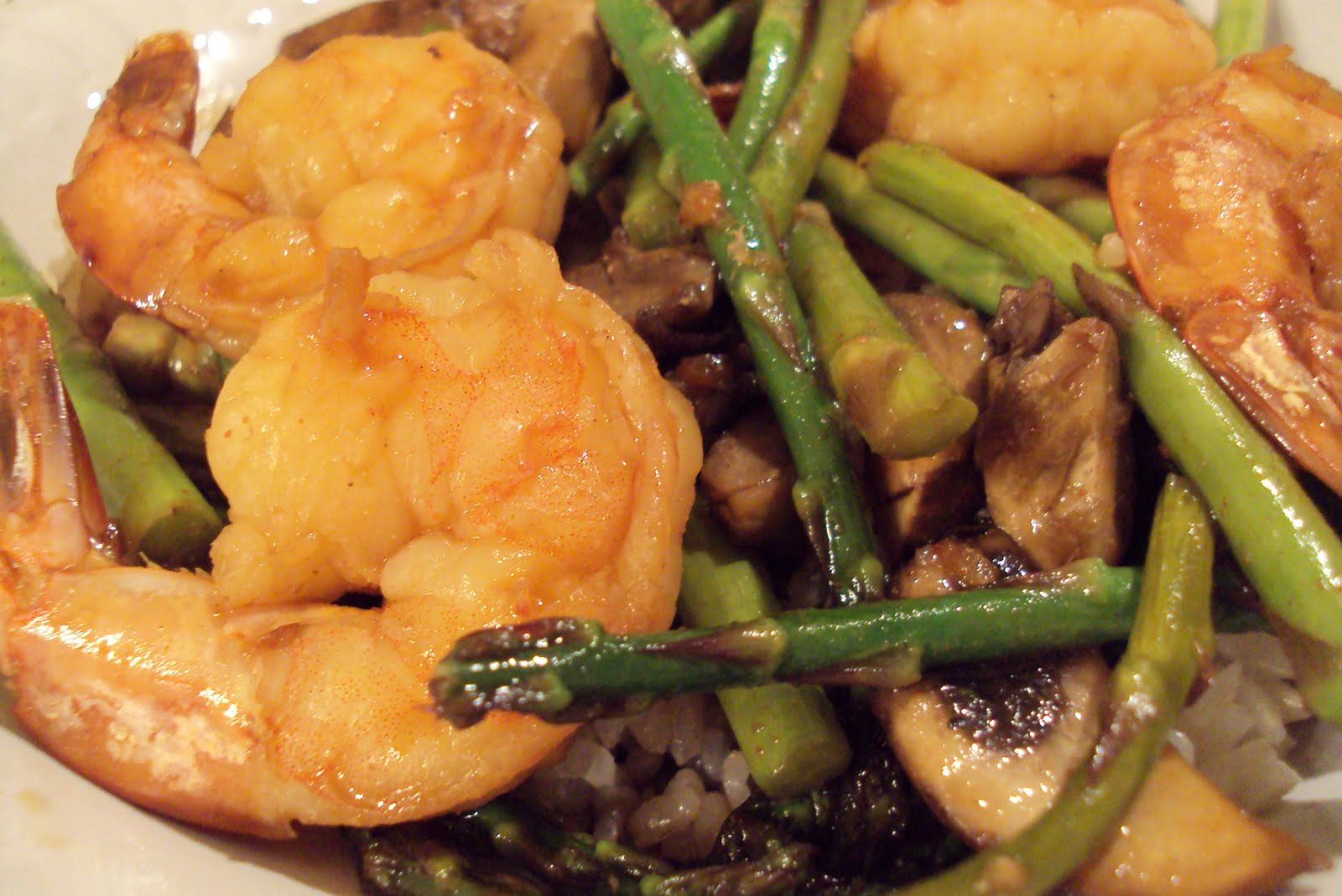 With Spring here and asparagus in abundance, I needed to think of something different to do with veggies. I decided to throw some asparagus and mushrooms I had in with some shrimp and schezwan sauce and created this simple easy gluten-free meal! Served over brown rice and you have a meal ready in minutes. I buy the frozen kind of rice you microwave from Trader Joe's - I've never been good at cooking rice on my own. Saturday, April 16, 2011